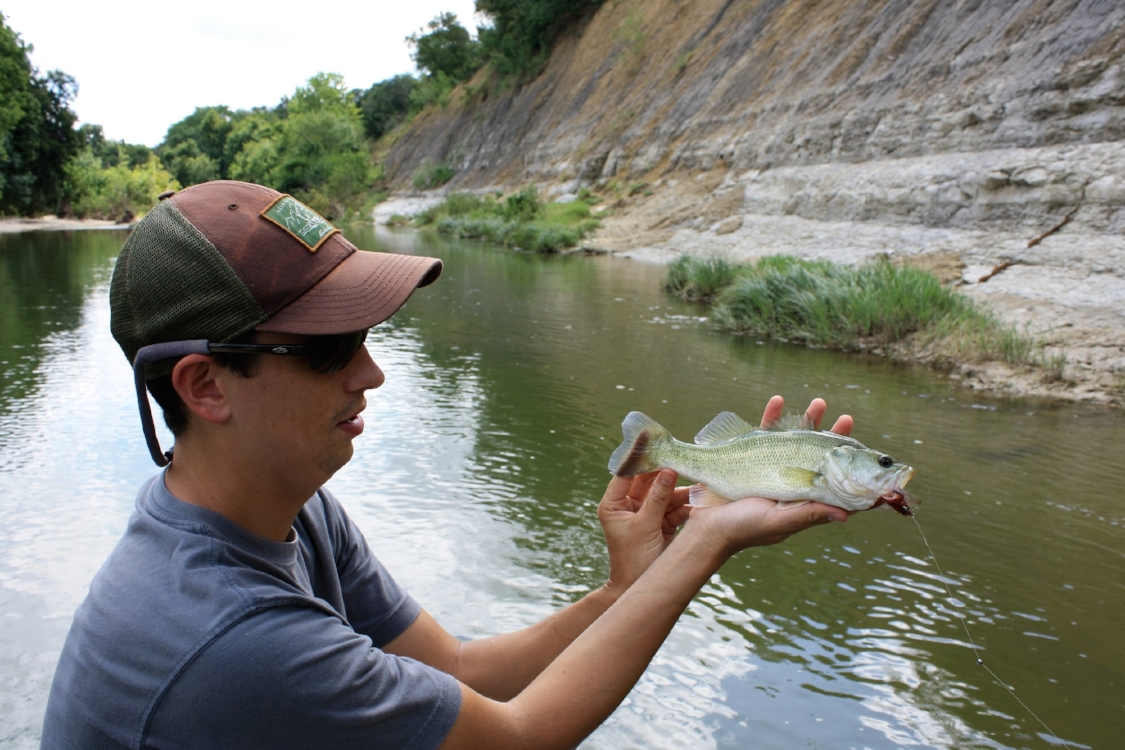 “I bet there is a bass under that ledge,” the flyfisherman confidently stated, “Let’s see.” He stood at the bow of a small inflatable boat. The oarsman positioned the boat, working it closer to the bank. After the cast, the man at the bow let the fly drop well below the underwater ledge before pulling in line with his left hand.