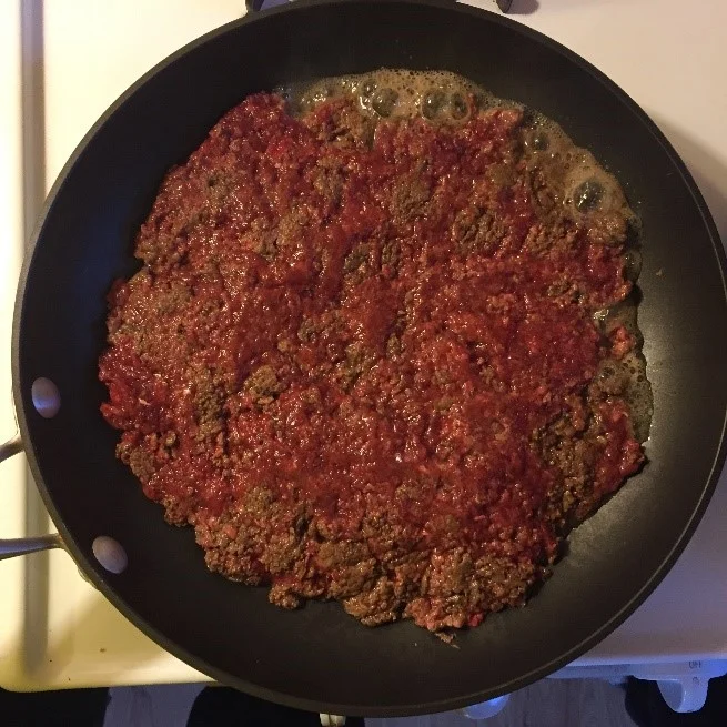 - While vegetables are cooking, brown beaver meat in a large skillet over medium-high heat. While cooking, add Worcestershire sauce and cook for 5-7 minutes, or until meat is brown and crumbly. (Figure 8)