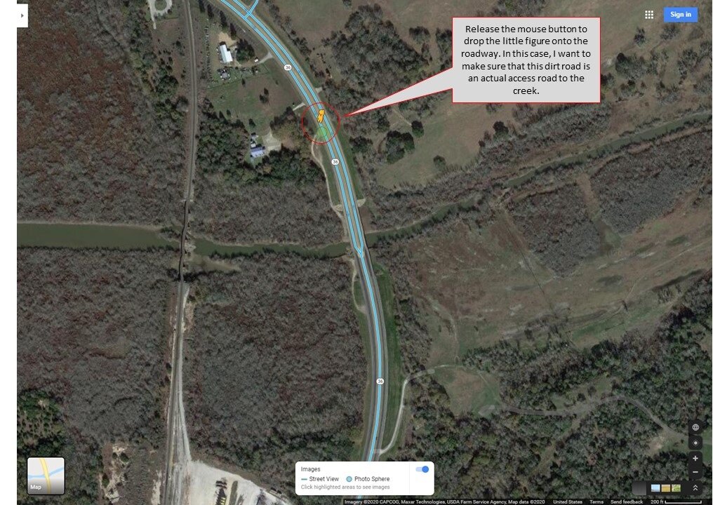 2) Use Google Street View to examine access routes to waterways